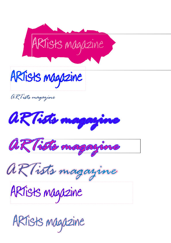 Shown to the right, is my next stage in the development of my title. I choose 3 or 4 different fonts that stood out to me and tried to develop them using stroke and colour features. Although i needed to think about the colour... here, i tried to concentrate more on the font style as i believe that is more important for a title. In the end, i choose the font 'Annie BTN'. I choose this font as i thought it looked rather artist and it was the font that stood out for me throughtout the process.